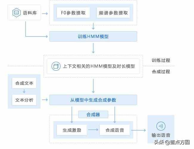 1)定义:根据统计模型来产生每时每刻的语音参数(包括基频、共振峰频率等),然后把这些参数转化为波形。主要分为3个模块:前端、后端和声码器。